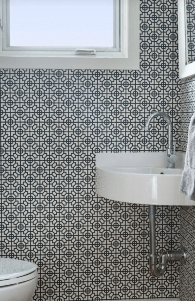 I’m loving the idea of a fun graphic print wallpaper – if there is one place in a house that you can go a little crazy decor wise, I think it’s a bathroom. What do you think?