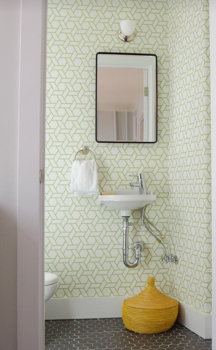 I’m loving the idea of a fun graphic print wallpaper – if there is one place in a house that you can go a little crazy decor wise, I think it’s a bathroom. What do you think?