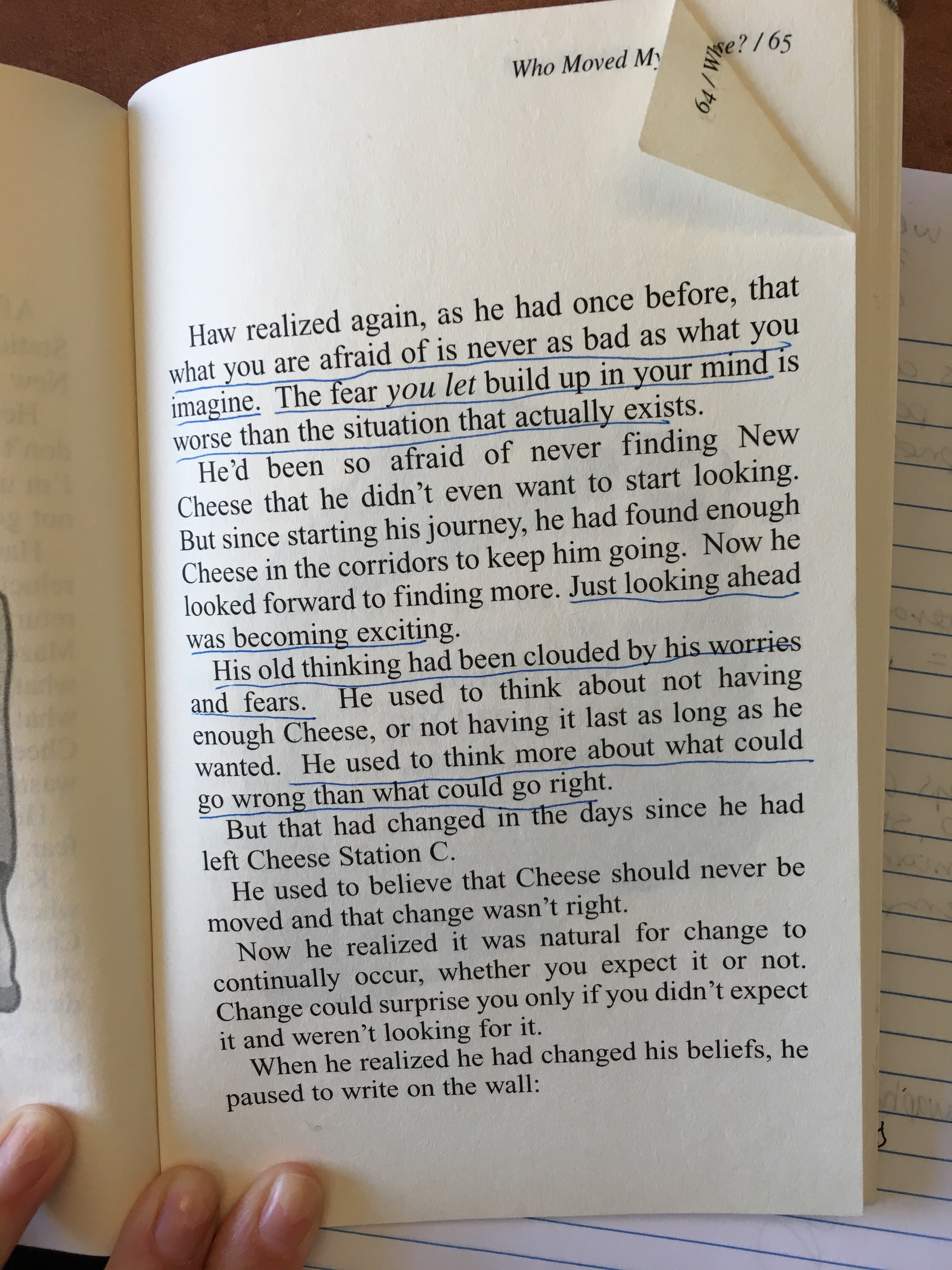 I absolutely loved this question, posed in the book Who Moved my Cheese. This book packs a profound punch – in minimal time – addressing the topic of how to deal with change.
