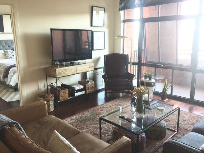 I was asked to consult on a room design recently, specifically to help with choosing a rug. The guidelines were pretty straight forward – an 8×10′ rug ideally for under $700, to spruce up this space: