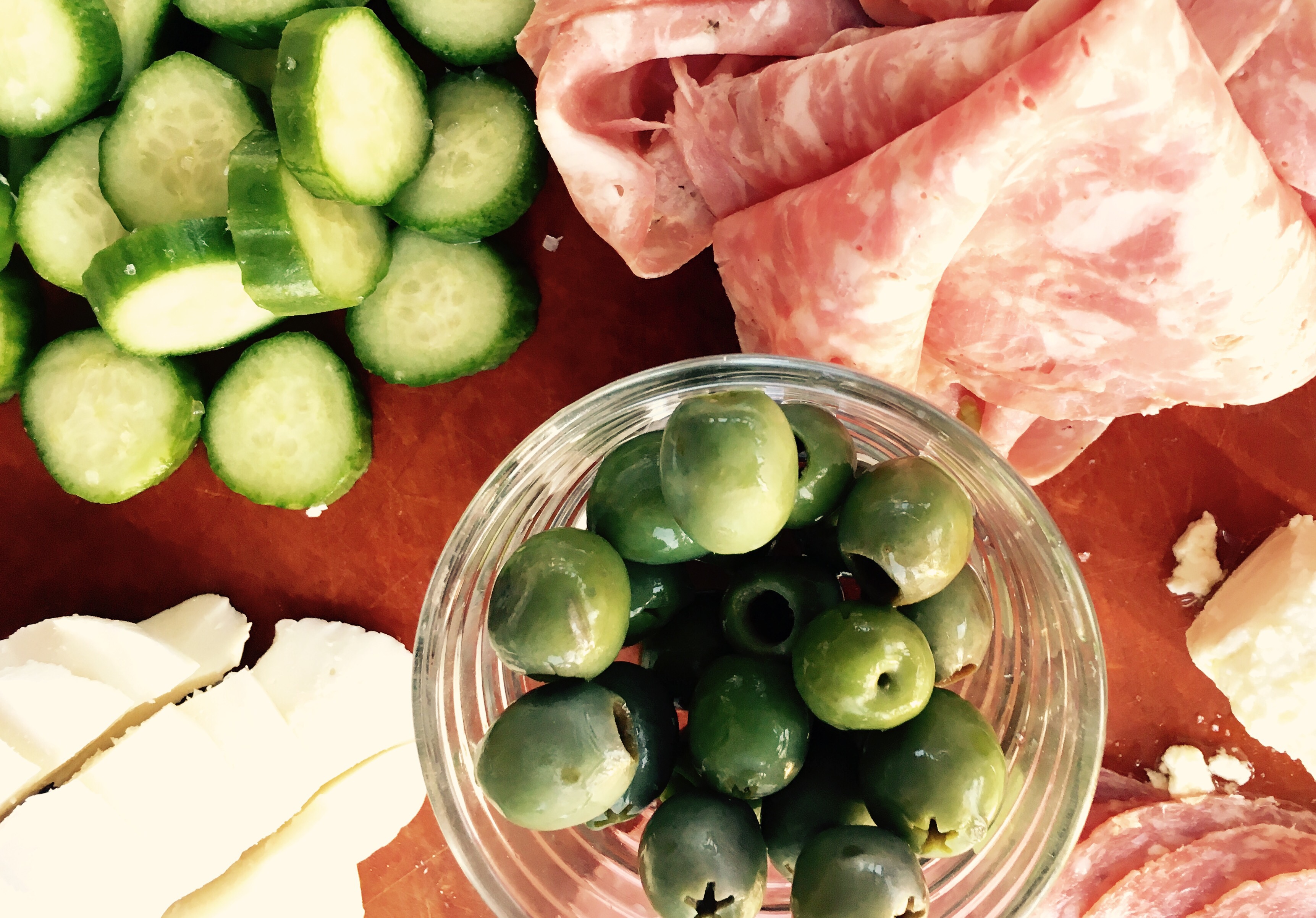 Buttery salami rosa, crisp baby cucumbers, briney green olives and creamy fresh mozzarella.