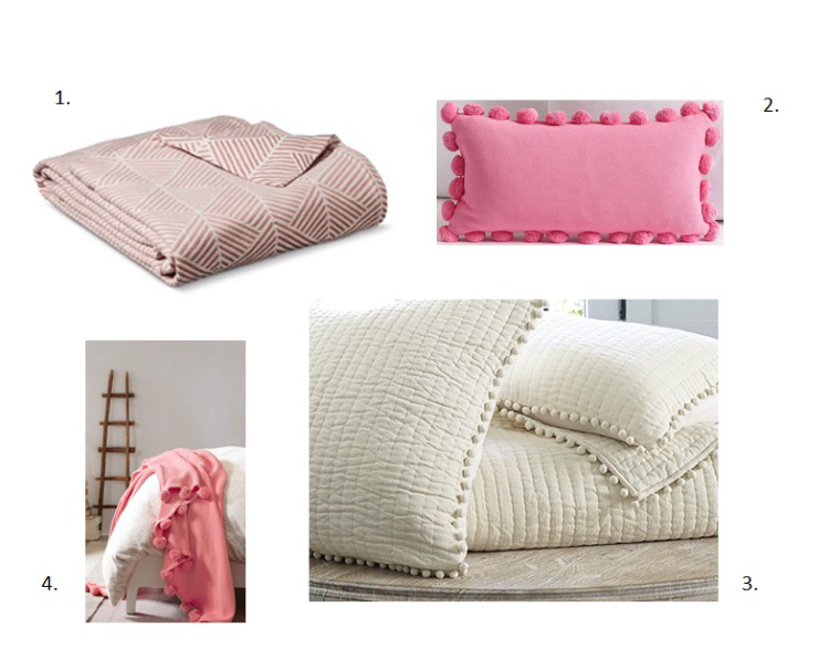 1.Cotton blanket/2.Pink pillow /3.Pom Pom quilt/4.Pink throw