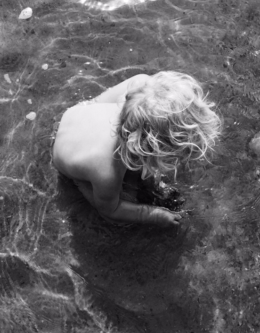 Search for crabs in the shallow water.