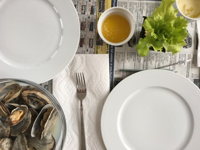 We set the table, using newspaper for the mess.