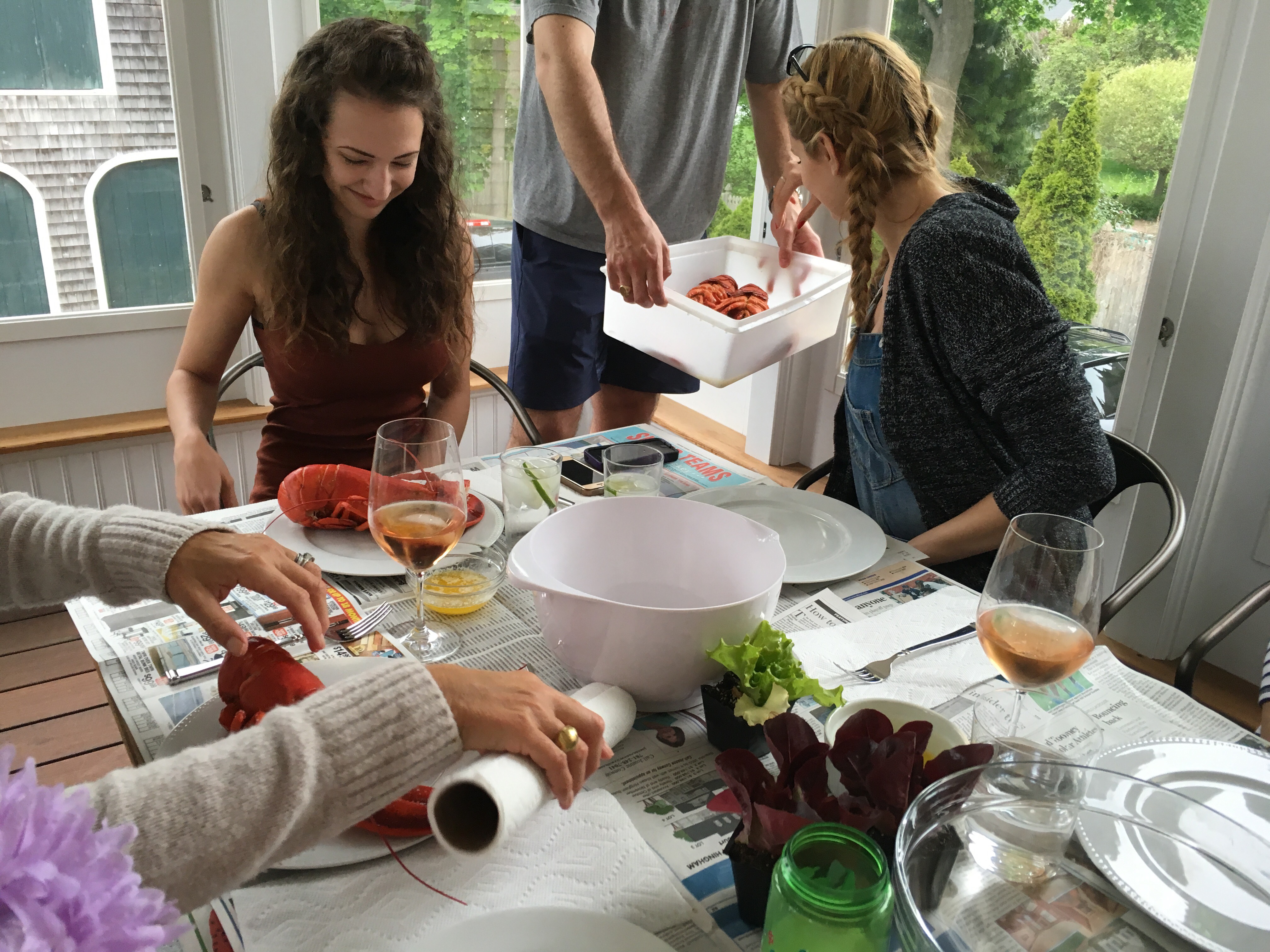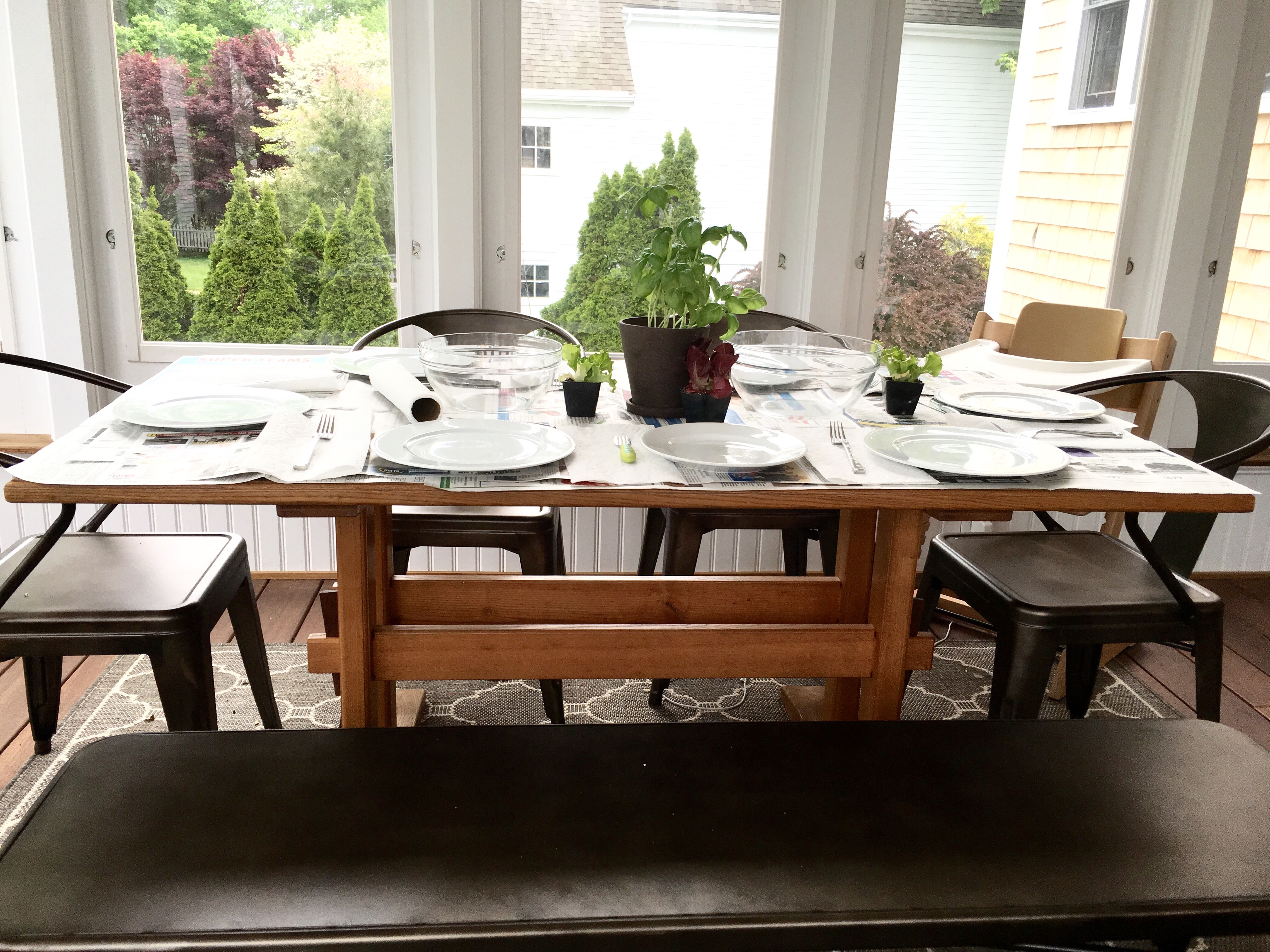We set the table, using newspaper for the mess.