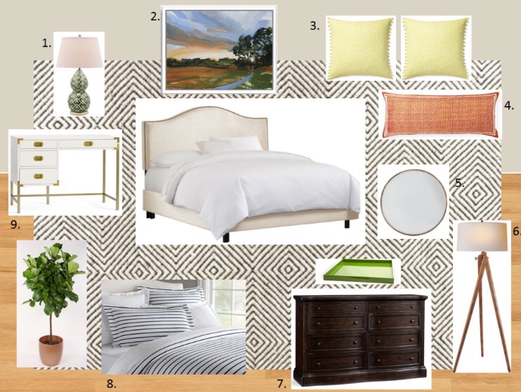 We already had a few pieces to work with. (bed, rug ordered, bureau).
