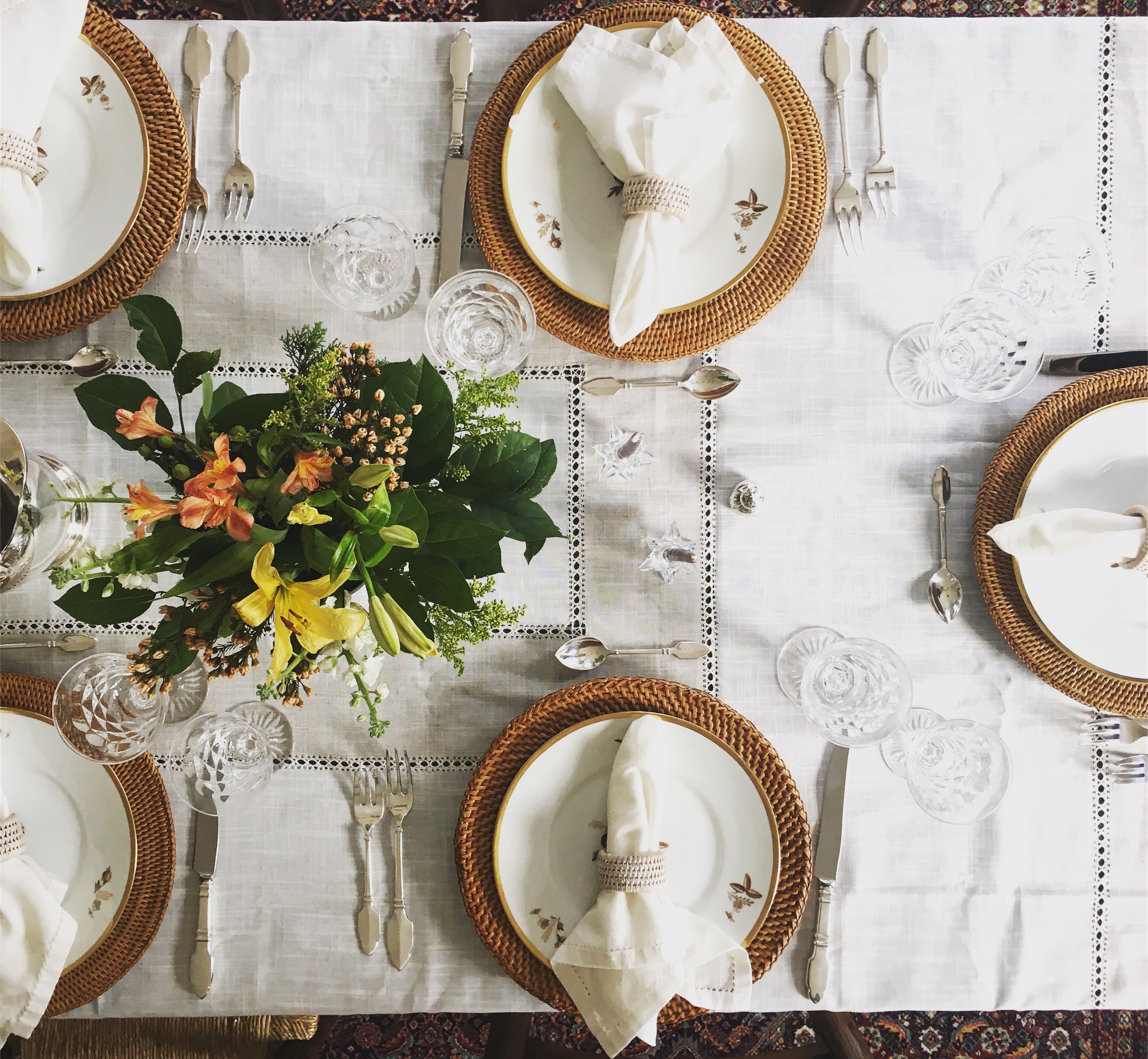 And these tables, these beautifully set tables, pulled us in, set the mood, gave us a physical place to come together. To talk, to laugh, to tell stories heard again and again, gaining meaning with each additional telling. They gave us a place to linger, and we did.