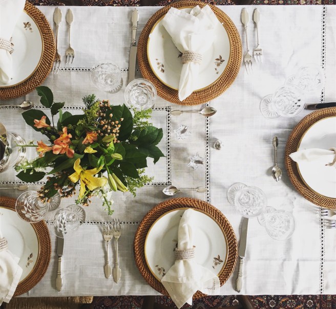 I remember arriving for Thanksgiving at my aunt and uncle’s house as a child. The tables were set with family china and an assortment of silver. Nothing matched – there were too many people joining to use only one set – but everything was special.