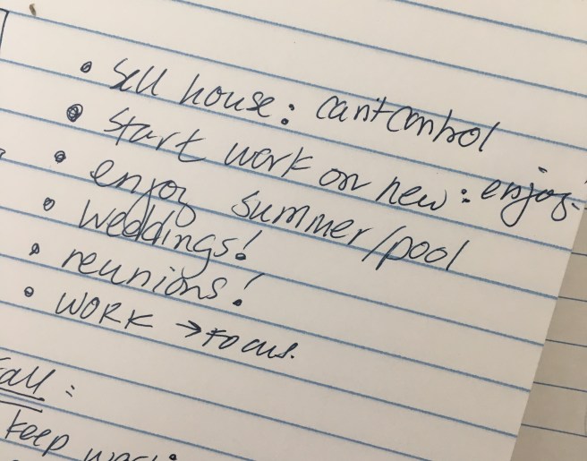 I can’t control what happens with our house sale. I can control the mindset with which I approach the upcoming schedule of stuff over the next 4 months – with excitement! And I can control how much effort I put into my work – I feel less stress when I put in more effort. Sounds so simple, put in more effort!