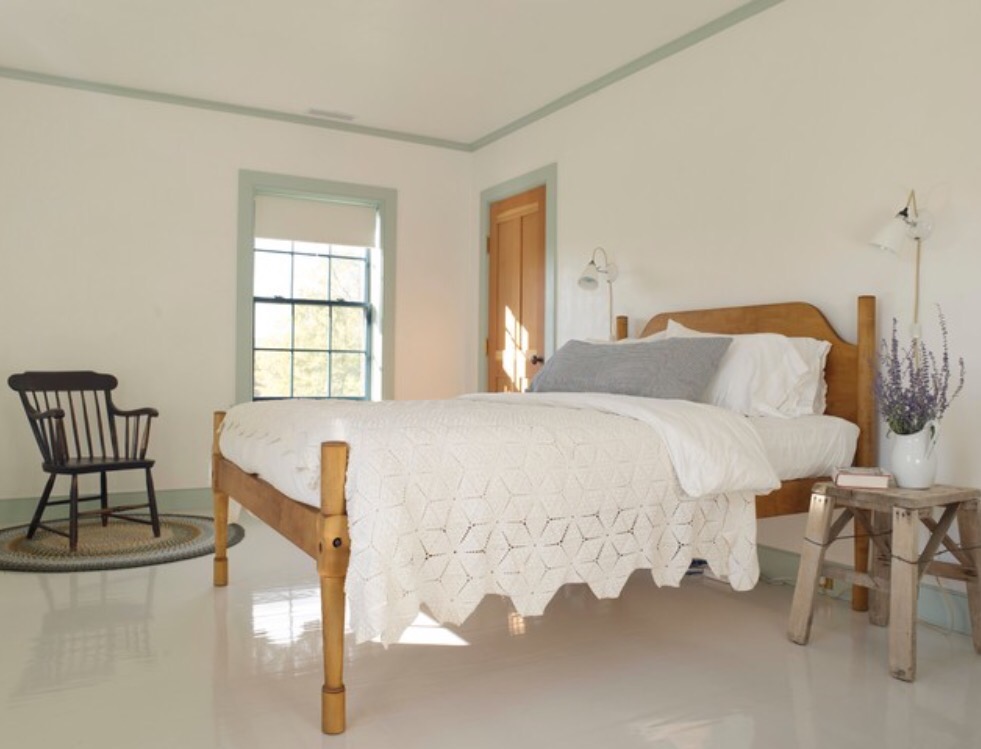 The first question then, is what color? My initial thought was either a light off white to give an airy feeling, something like this room done by Rafe Churchill (I love his work):