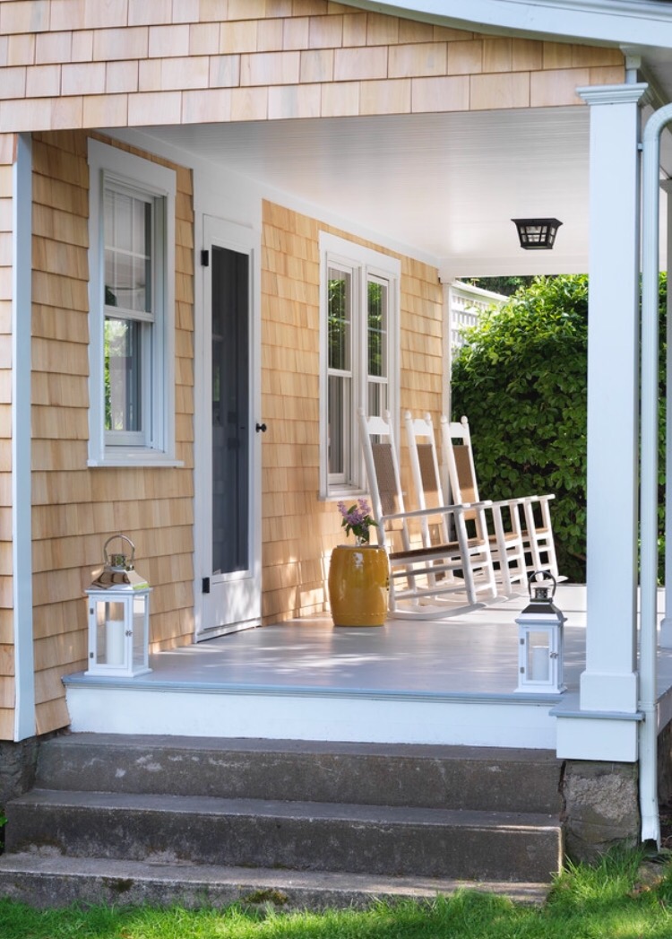 Another option would be a light grey blue/green, like you might see on a paint d covered porch. We had one like this in the Vermont farmhouse I grew up in: