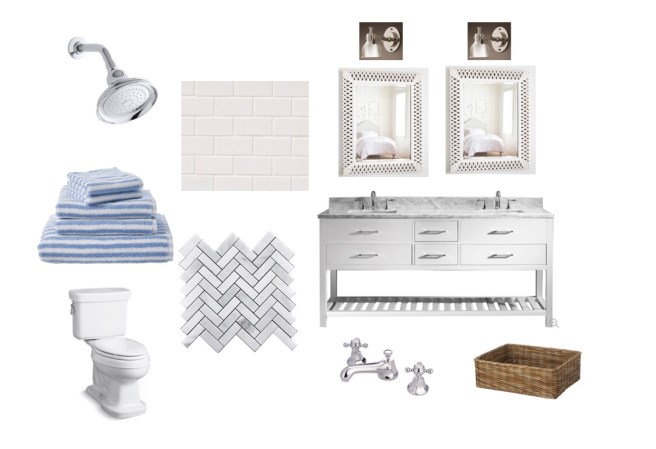 Next up – the fun part – the idea board. We knew we wanted tongue and groove, light bright white walls, and blue rug. Some dark contrast (I find that with a neutral space, some dark contrast is really necessary to help the space pop). And a pop of color. Here she is:
